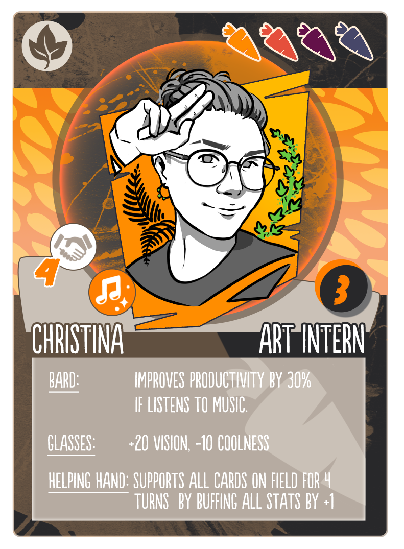 Johanna will be on maternal leave for about 6 months, so we are happy to have Katharina join our team and take over the role of creating concept art, illustrations, 2D magic! One week in, she already proved her skills, and she’s a jolly good fellow to have around. True Carrot Spirit! Now find out what she has to say about herself…